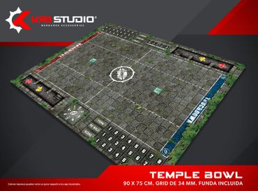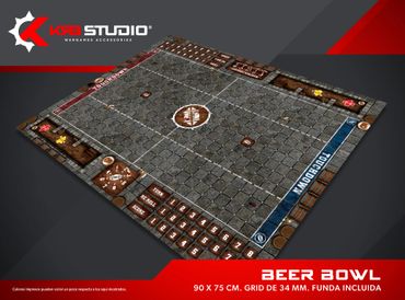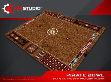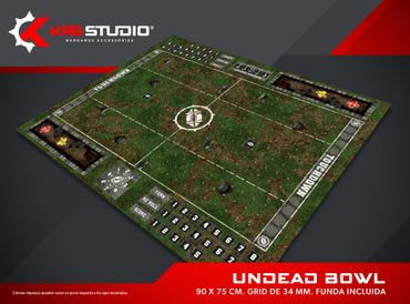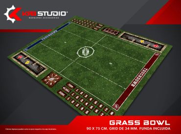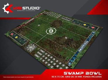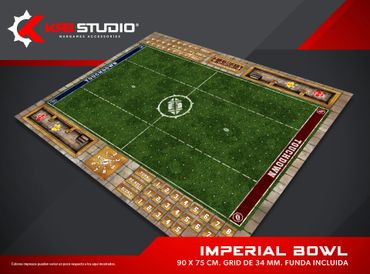 Nada representa mejor a tu equipo como un estadio propio. Nuestros pitch incluyen bancas, tabla de clima y scatter para el balón, además de contar con espacio para el marcador, re rolls y turno.