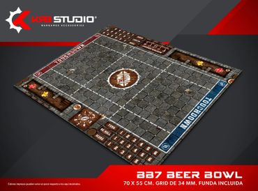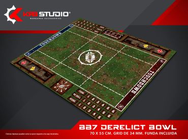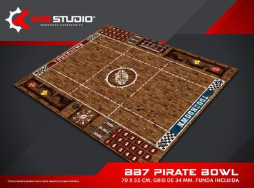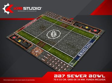 Nada representa mejor a tu equipo como un estadio propio. Compatible con BB sevens! Nuestros pitch incluyen bancas, tabla de clima y scatter para el balón, además de contar con espacio para el marcador, re rolls y turno.